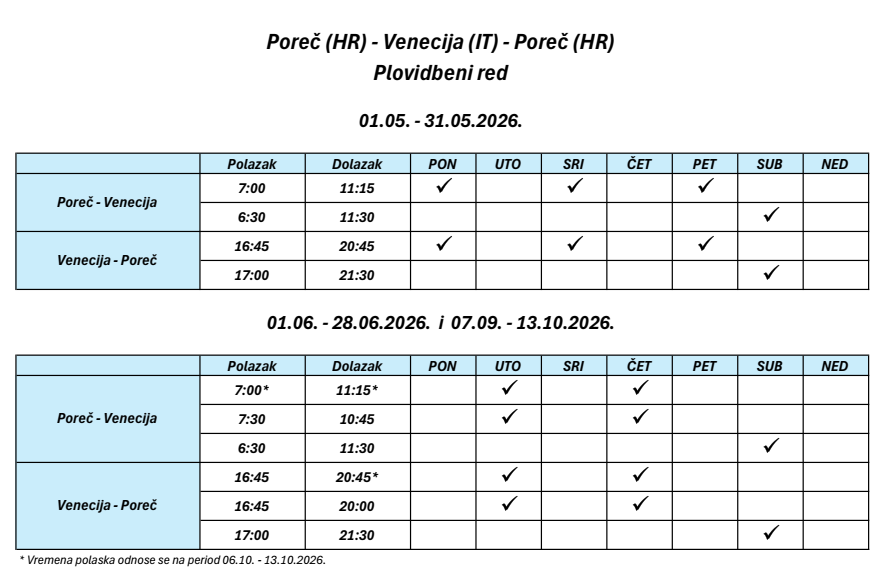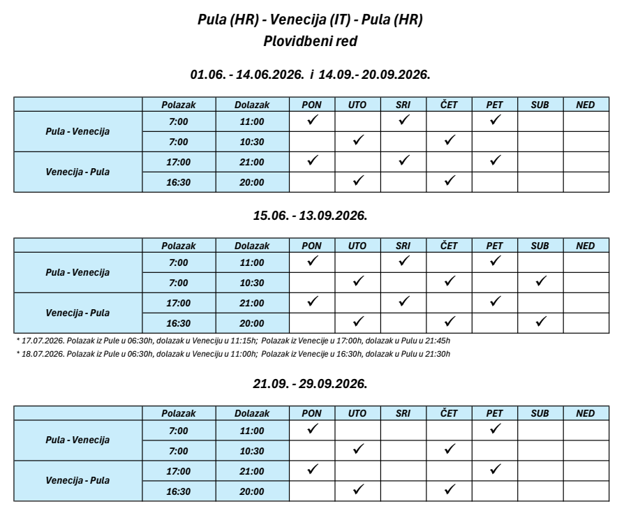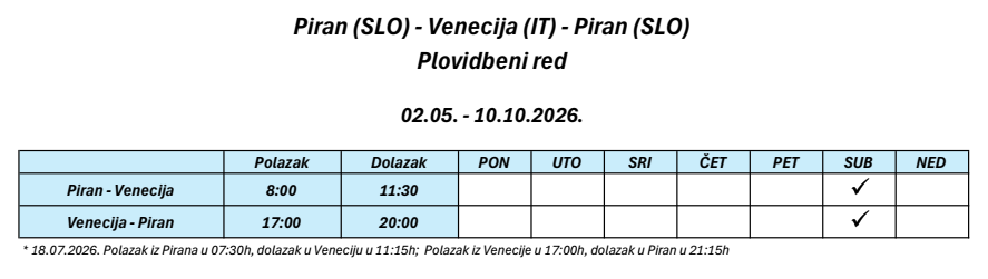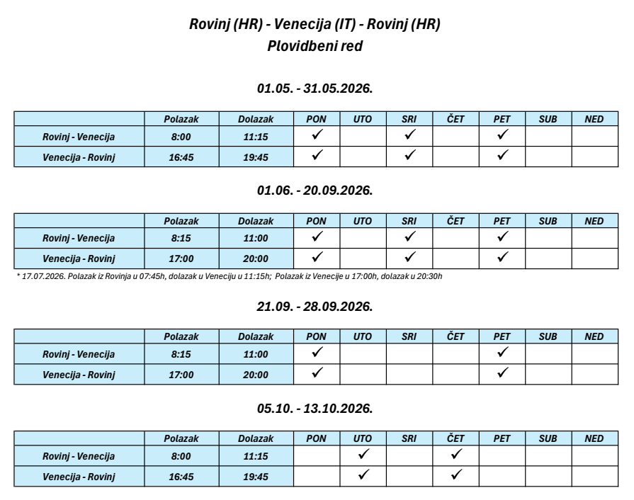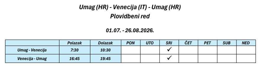 Red plovidbe brodske linije Hrvatska - Venecija